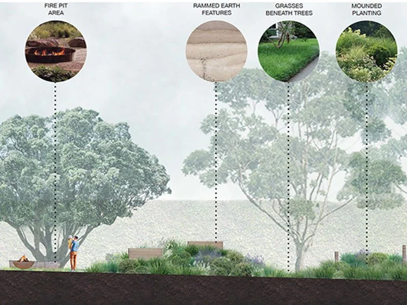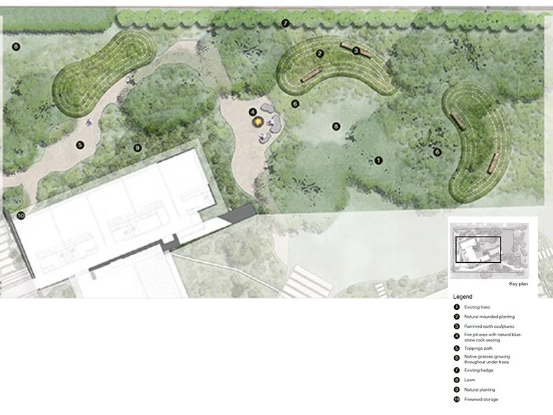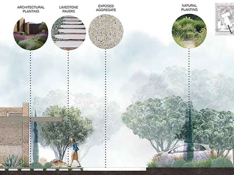 A coastal garden with a hint of the Mediterranean — grounded in texture, simplicity, and natural flow. Organic paths lead through layered planting, with gravel, stone, and timeless materials anchoring the design. The layout is fluid and intentional, built for easy care and long life. It feels relaxed, resilient, natural, and refined